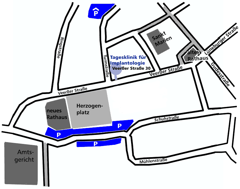 Sie finden uns im Zentrum von Uelzen zwischen dem alten Rathaus (Stadtmitte) und dem neuen Rathaus (Herzogenplatz).